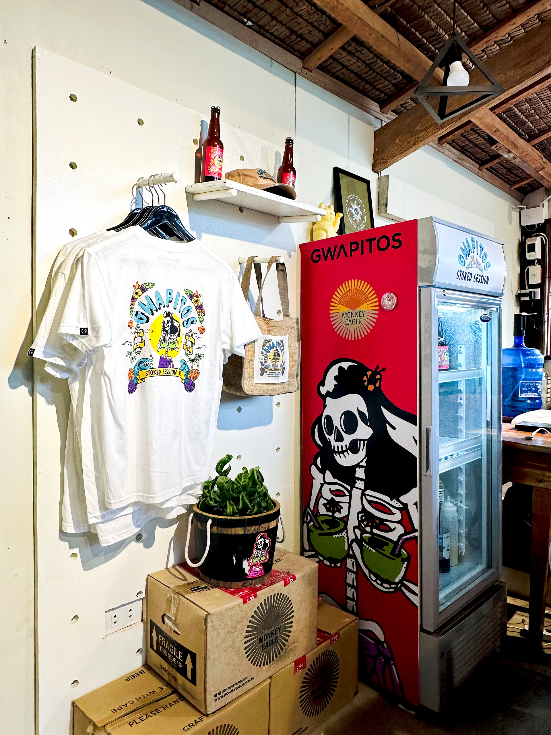 Gwapitos is a lifestyle brand born on Siargao Island, capturing the essence of surf and skate culture—stoke and good times. In collaboration with Monkey Eagle Brewery, they launched their signature brew, the Stoked Session Ale, a beer crafted to celebrate the spirit of stoke. The beer’s branding is a blend of grungy, tropical, and surf vibes, perfectly aligning with the laid-back, adventurous lifestyle that Gwapitos represents.